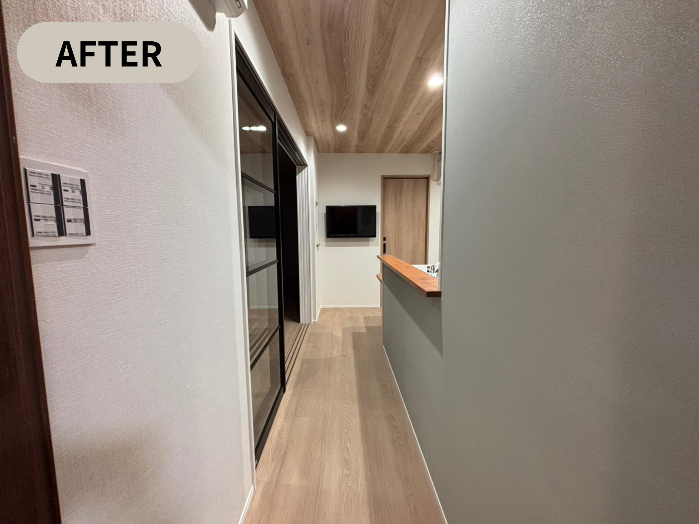 内壁は、既存の壁の上から新しい壁材を施工することで、空間を整えながら内装をきれいに一新。